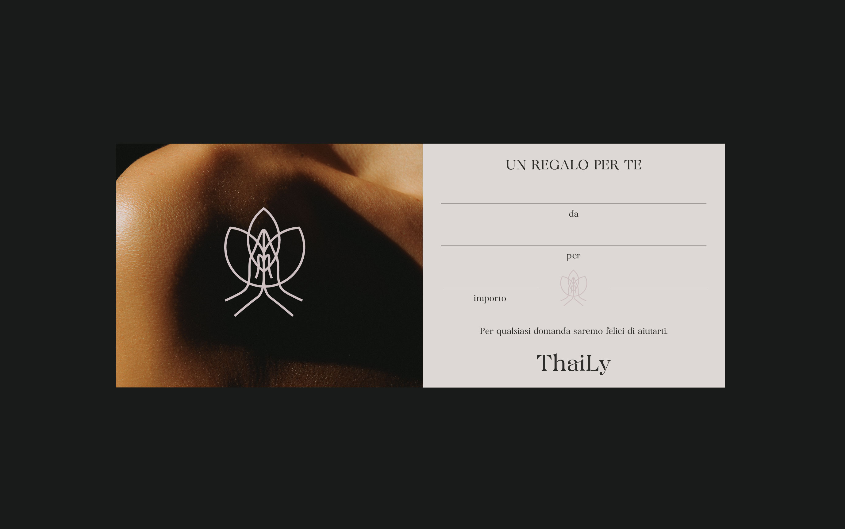 Thaily is a recently created massage center located in Milan and offers bespoke treatments and wellness experiences, using traditional thailandese techniques. Key to the new identity was the concept of connection between Thailand and Italy, which is highlighted with the name itself.